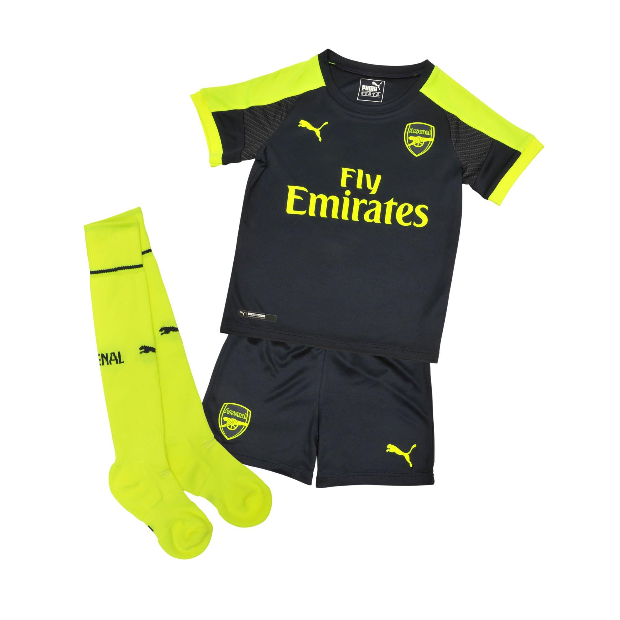 It boasts arsenal's famous yellow away kit color and combines it with grey detailing and a generally classic design. Kit is not likely to be popular with fans The arsenal mini kit is the same as the adults in a peacoat blue and yellow. Home arsenal kit 2016/17 kit review. Arsenal third/cup kit 2016/17 inspired by arsenal's focus on the future, the third kit features a very modern dark navy look with safety yellow contrasting highlights.